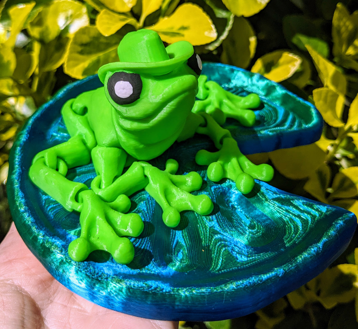 Hop into a world of fun with these 3d printed frogs! Choose from frog, cowboy, rose, and butterfly styles. Ribbit your way to a unique collection of silly articulating companions.